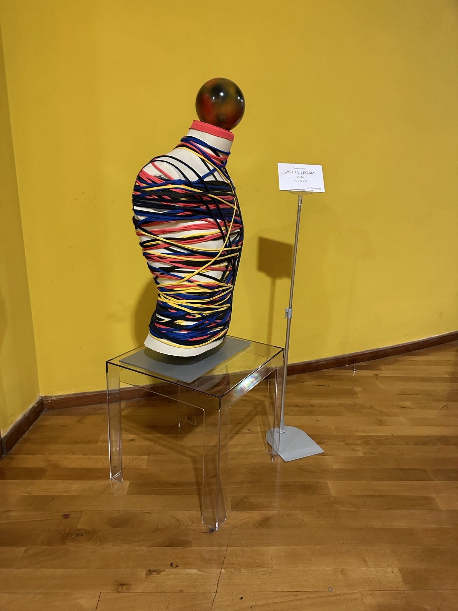 riacquistano una nuova vita e un inedito significato grazie al processo artistico di “riciclo”. Il titolo della mostra, “Fil Rouge”, si riferisce al logico filo conduttore che unisce la produzione concettuale di Faranda, capace di esprimere in modo chiaro e mai confuso riflessioni su importanti temi legati all’attualità e all’esistenza.