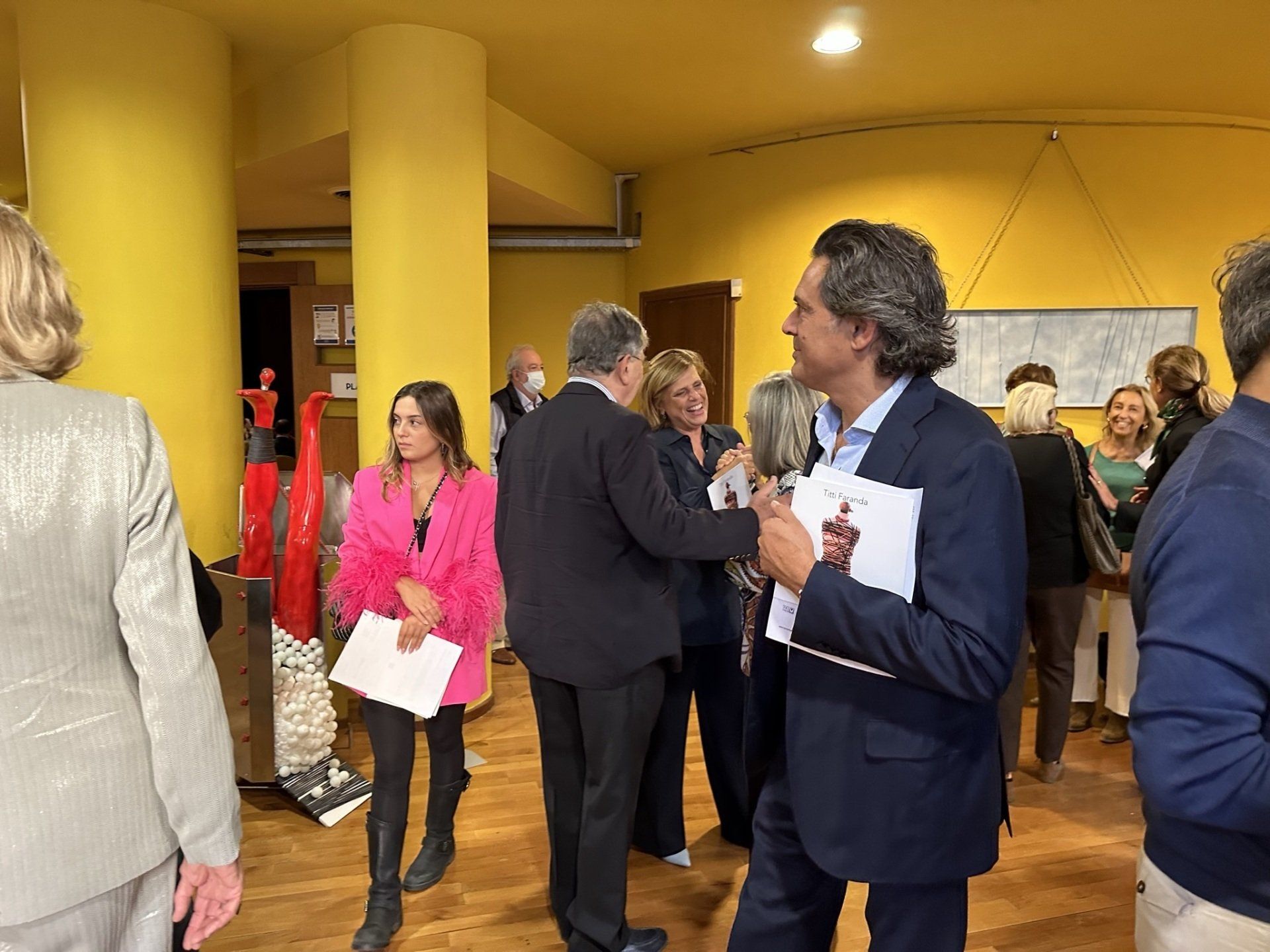 Titti Faranda esordisce con la mostra personale “Fil Rouge” che si configura, da una parte, come un sentito omaggio a questa eclettica personalità della cultura italiana, dall’altra, come la presentazione della sua prima produzione artistica realizzata nel corso degli ultimi dieci anni. Il linguaggio artistico di